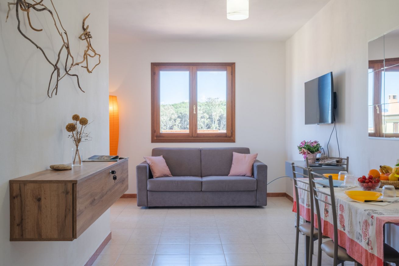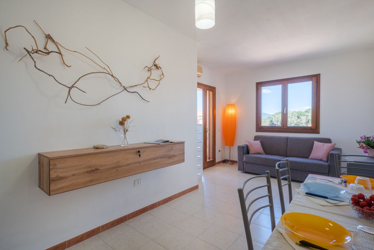 Internamente di compone di soggiorno-pranzo con divano letto, angolo cottura a vista, camera da letto matrimoniale e bagno con doccia.