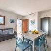 ELEGANT HOLIDAY HOME of new construction in a small residential complex in a quiet area of Cala Gonone; located on the first floor, it consists of a living room with kitchenette and sofa bed with access to a beautiful veranda furnished with a table, chairs, and a small sofa, a double bedroom with ensuite bathroom, a second twin bedroom, and a second bathroom.