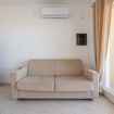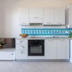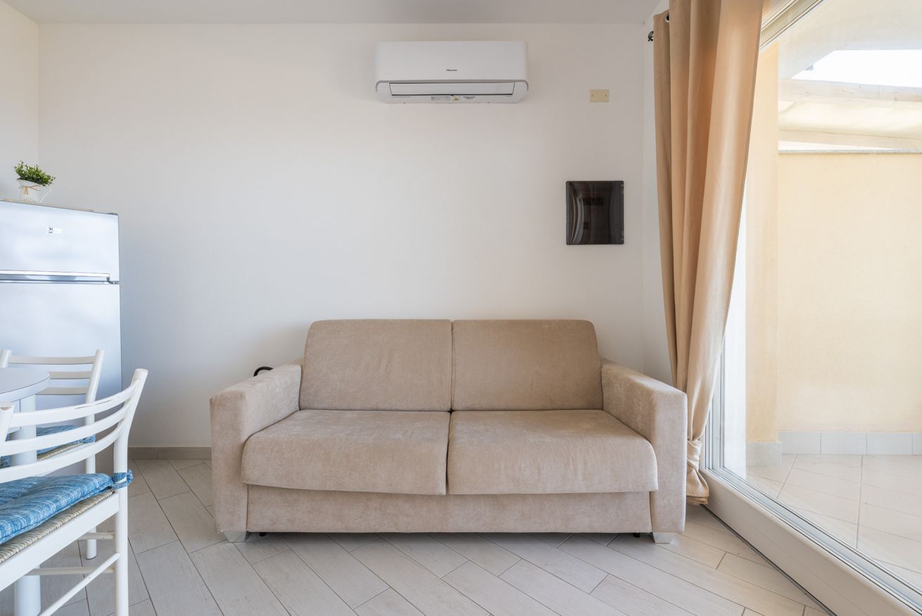 Living room with kitchenette: bright and functional space with a fully equipped kitchen and a comfortable sofa bed, perfect for relaxing or accommodating two additional guests.