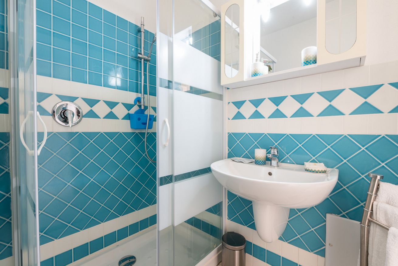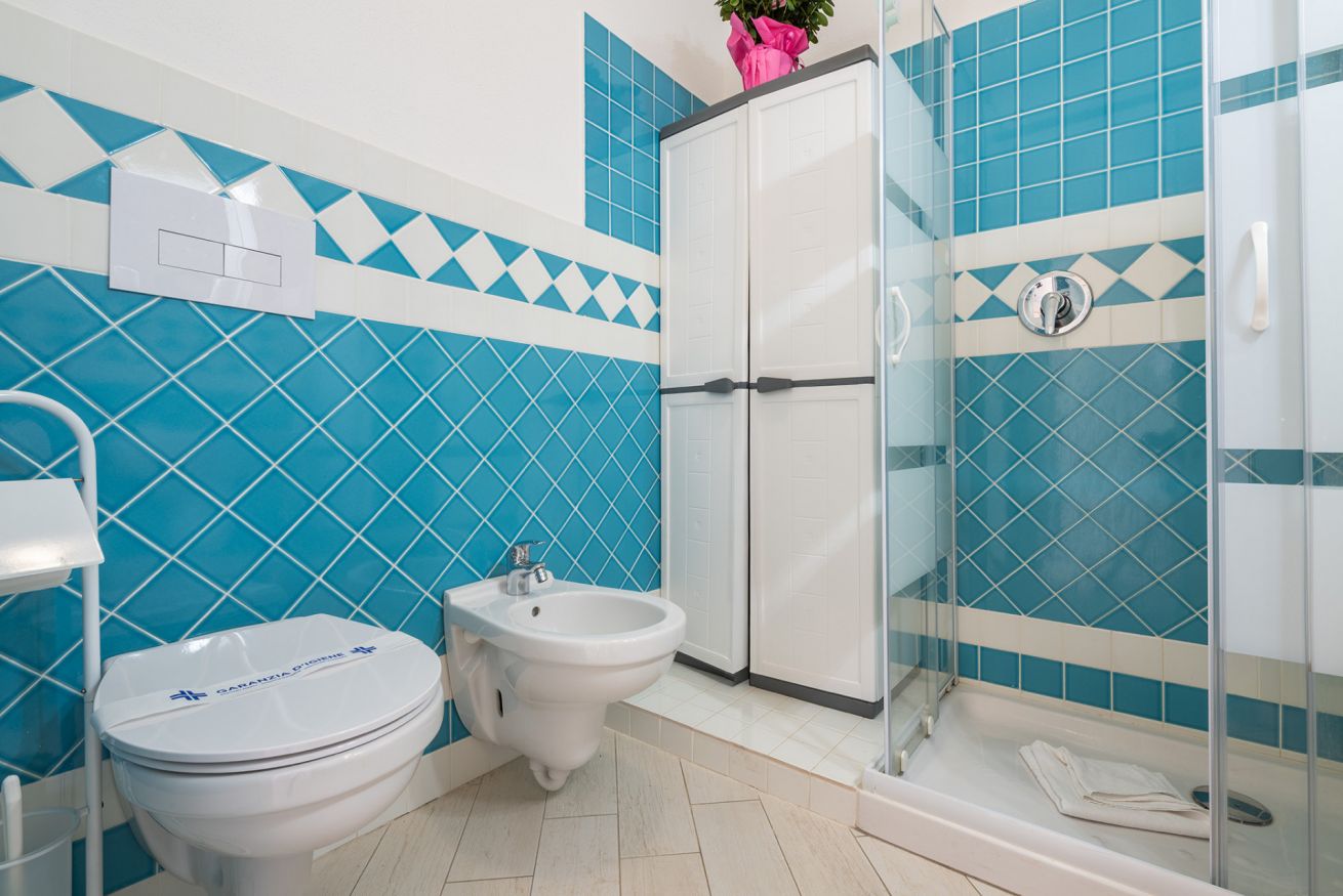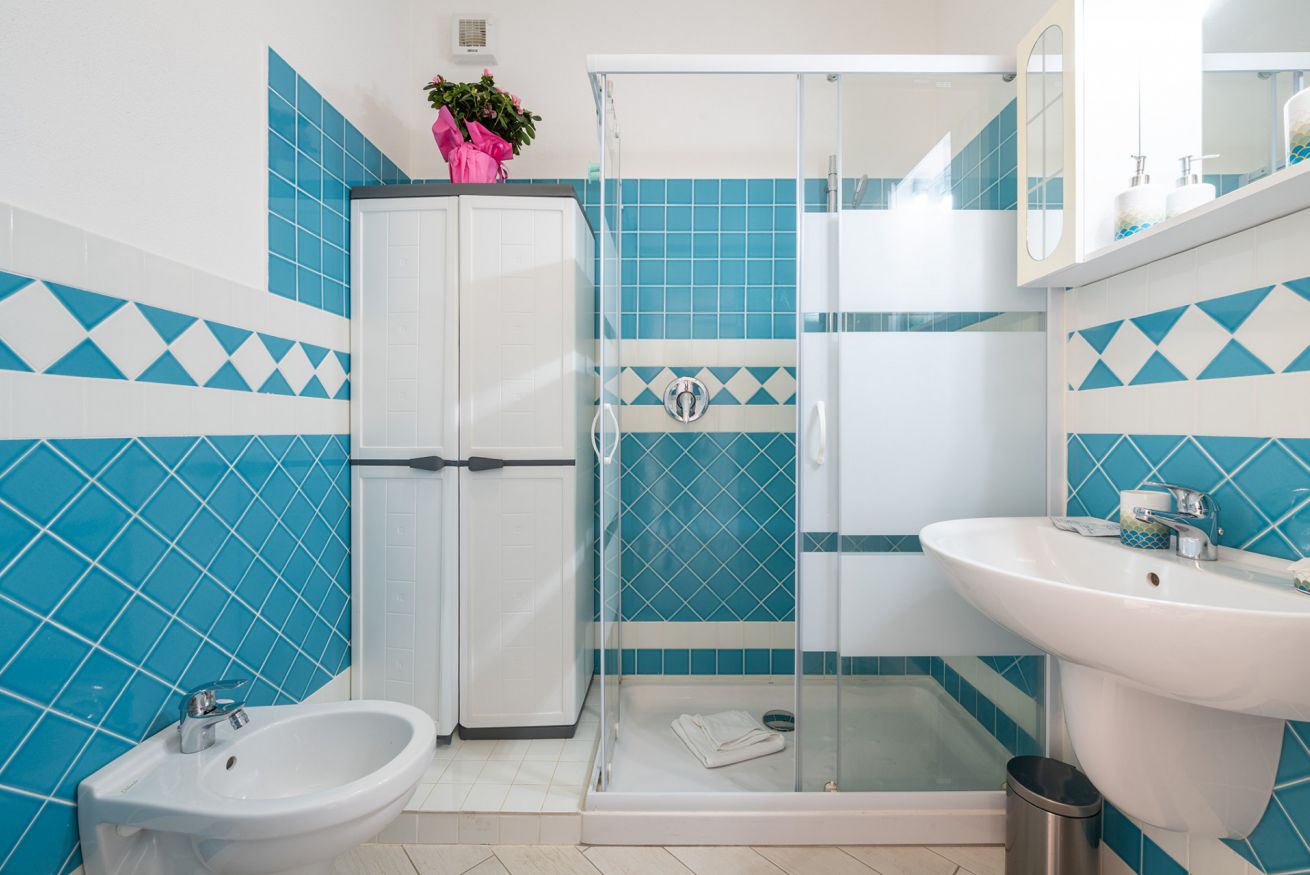 Modern bathroom: with shower, practical and comfortable, ideal for freshening up after a day at the beach.