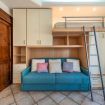 It consists of three accommodations, each with independent entrance: a ground floor studio with sofa bed and pull-out bunk bed, and bathroom; a second floor with living room, sofa bed, separate kitchen, double bedroom with an additional third bed, and bathroom; an attic with a marvelous sea view, elegant living area with kitchenette, double bedroom with private bathroom, second double bedroom, and second bathroom.
