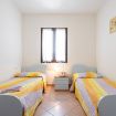 Internamente la casa si sviluppa su due livelli: al piano terra troviamo il soggiorno con angolo cottura e divano letto, un bagno di servizio e la veranda coperta, attrezzata con tavolo e sedie per godere di pranzi e cene all’aperto; nel piano superiore si trova la zona notte, composta da camera matrimoniale con proprio terrazzino, camera doppia con letti singoli all’occorrenza unibili a formare un secondo letto matrimoniale e secondo bagno con doccia.