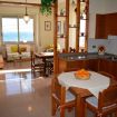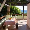 Large sea-view veranda furnished with tables, chairs, and built-in seating with cushions — perfect for breakfast, lunch, or dinner outdoors