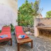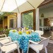 – Outdoor space furnished with table, chairs, barbecue, parasol and sun loungers